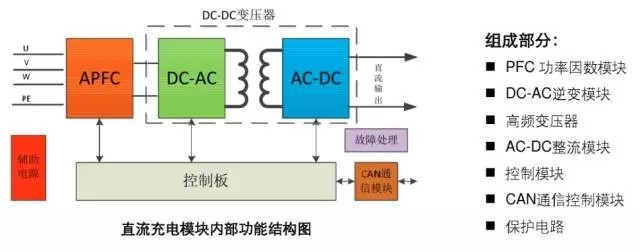 直流电动汽车充电桩,俗称就是“快充”,它一般是固定安装在电动汽车外,与交流电网连接,可以为非车载电动汽车动力电池提供直流电源的供电装置。直流充电桩的输入电压采用交流电,输出为可调直流电,直接为电动汽车的动力电池充电。其电源多采用三相四线制动力电供电,可以提供足够大的功率,输出的电压和电流调整范围大,可以实现快速充电的要求。